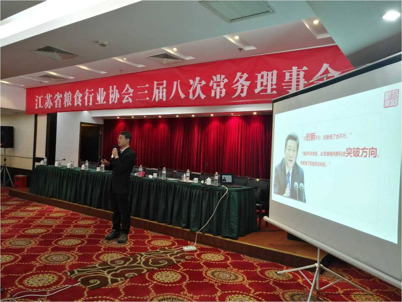 3月22日,省糧食行業協會三屆八次常務理事會在南京隆重召開。省糧食局韓峰副巡視員到會講話,省協會盧保全會長作題為“全面提升放心糧油工程,大力塑造江蘇糧油品牌”的工作報告。董事長尹雪斌博士作為特邀嘉賓在大會上做了題為“我們的未來農業—功能農業”的主題報告,報告中建議江蘇省創建全國功能糧油產業先行區以支撐“江蘇好糧油”行動,得到了協會領導和與會企業家的一致認可。